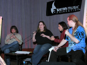 Courtesy of Austin Chronicle "Women of Rock Roll" Panel 10.09.04 L to R: Stephanie Crock, Margaret Mosher, Lindsey Gregory & Trina Quinn |